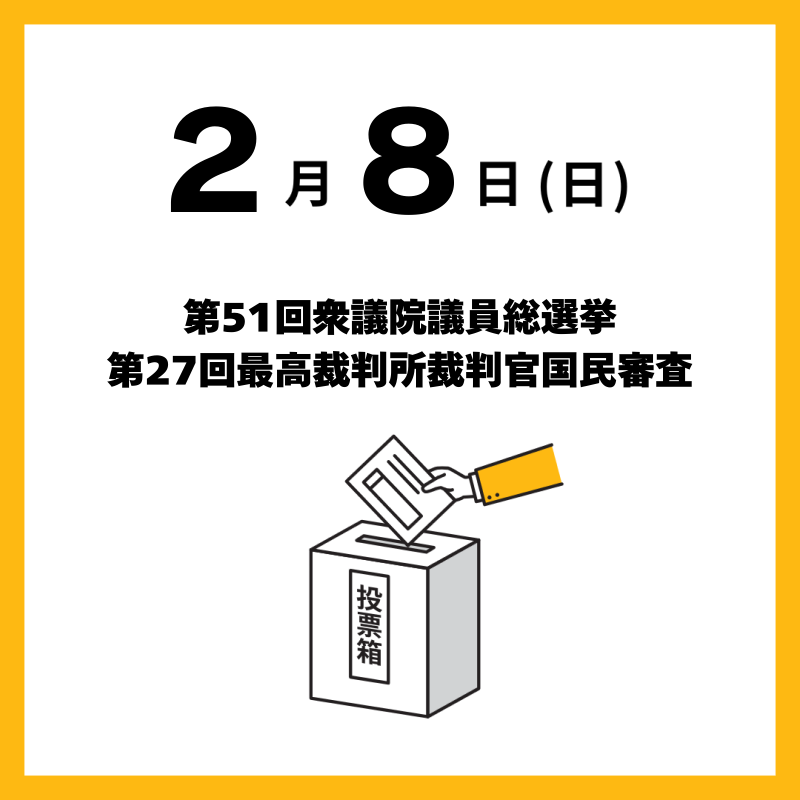 第51回衆議院議員総選挙・第27回最高裁判所裁判官国民審査【投開票日:令和8年2月8日(日)】