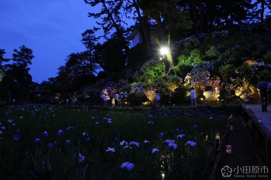 日中はあじさい花菖蒲コンサート、夜は花菖蒲園周辺を陶芸作品の灯篭で灯すAKARI NIGHTを実施しました。