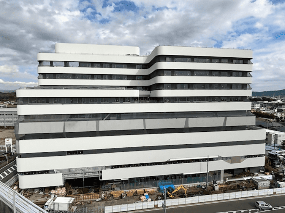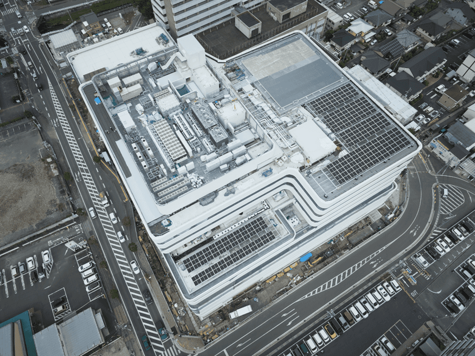 足場を外し、全体の外観が見えるようになりました。引き続き、外装工事、壁・天井の下地工事と内装ボード工事、設備(太陽光パネル100kW)工事を行っています。工事進捗率は76.0%です。