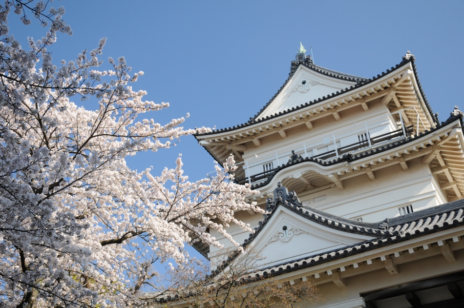 毎年4月中旬から下旬にかけて、城址公園の御感の藤が、ひときわ目をひきます。
