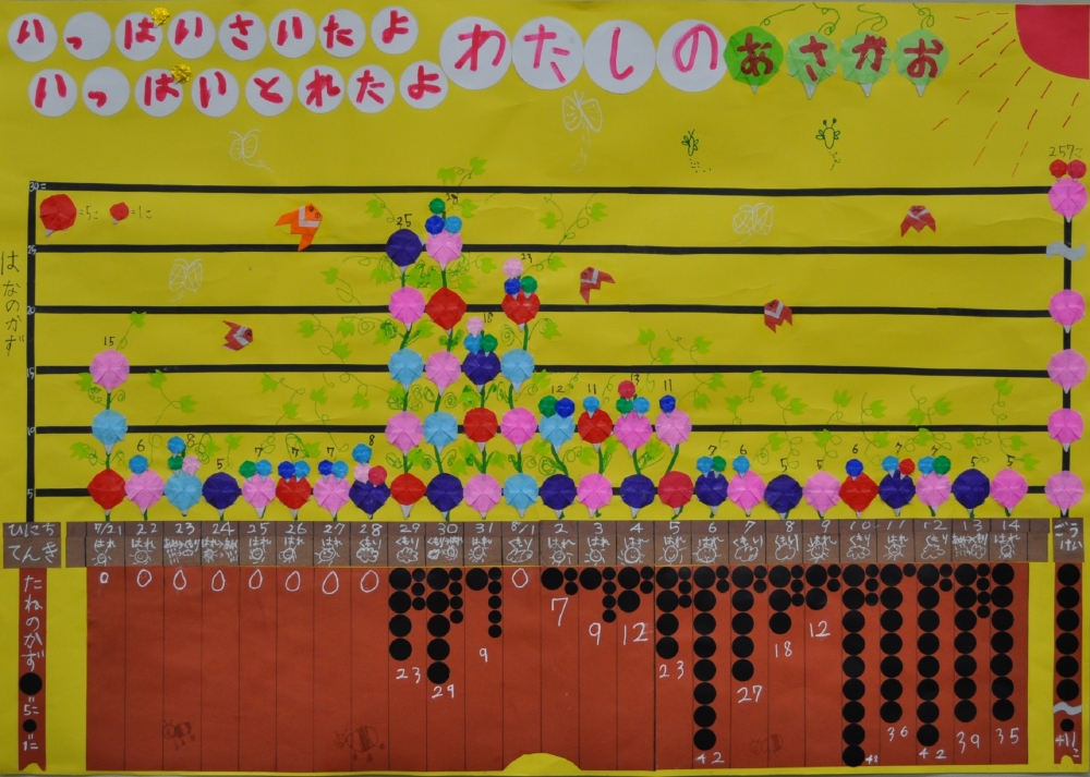 「いっぱいさいたよ いっぱいとれたよ わたしのあさがお」