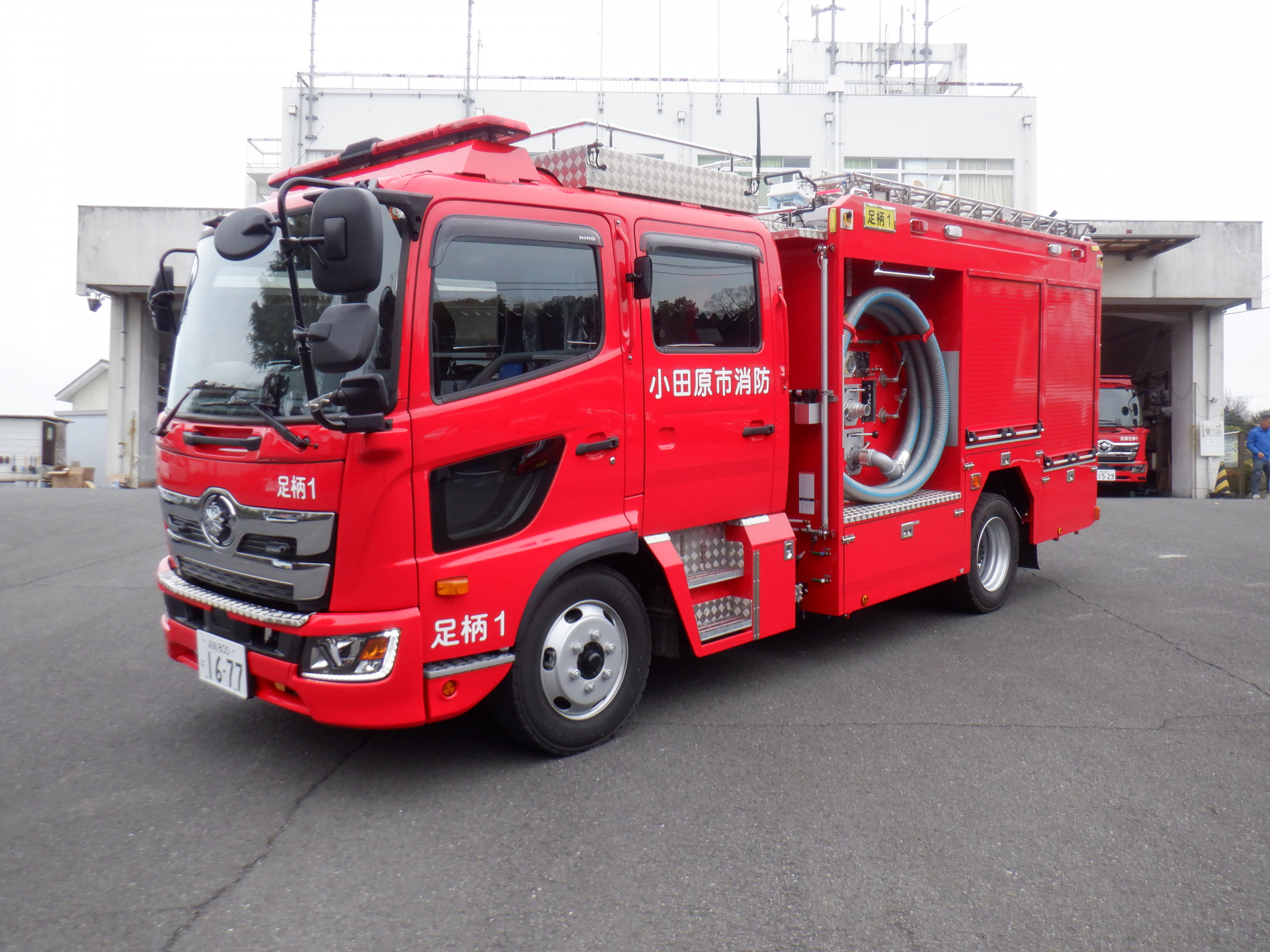 水槽付消防ポンプ自動車とは、消防ポンプ自動車に水タンク積載した車両で、消火栓や防火水槽などを利用しなくても放水する事ができます。「タンク車」とも呼ばれ1,500L以上の水槽を装備しています。