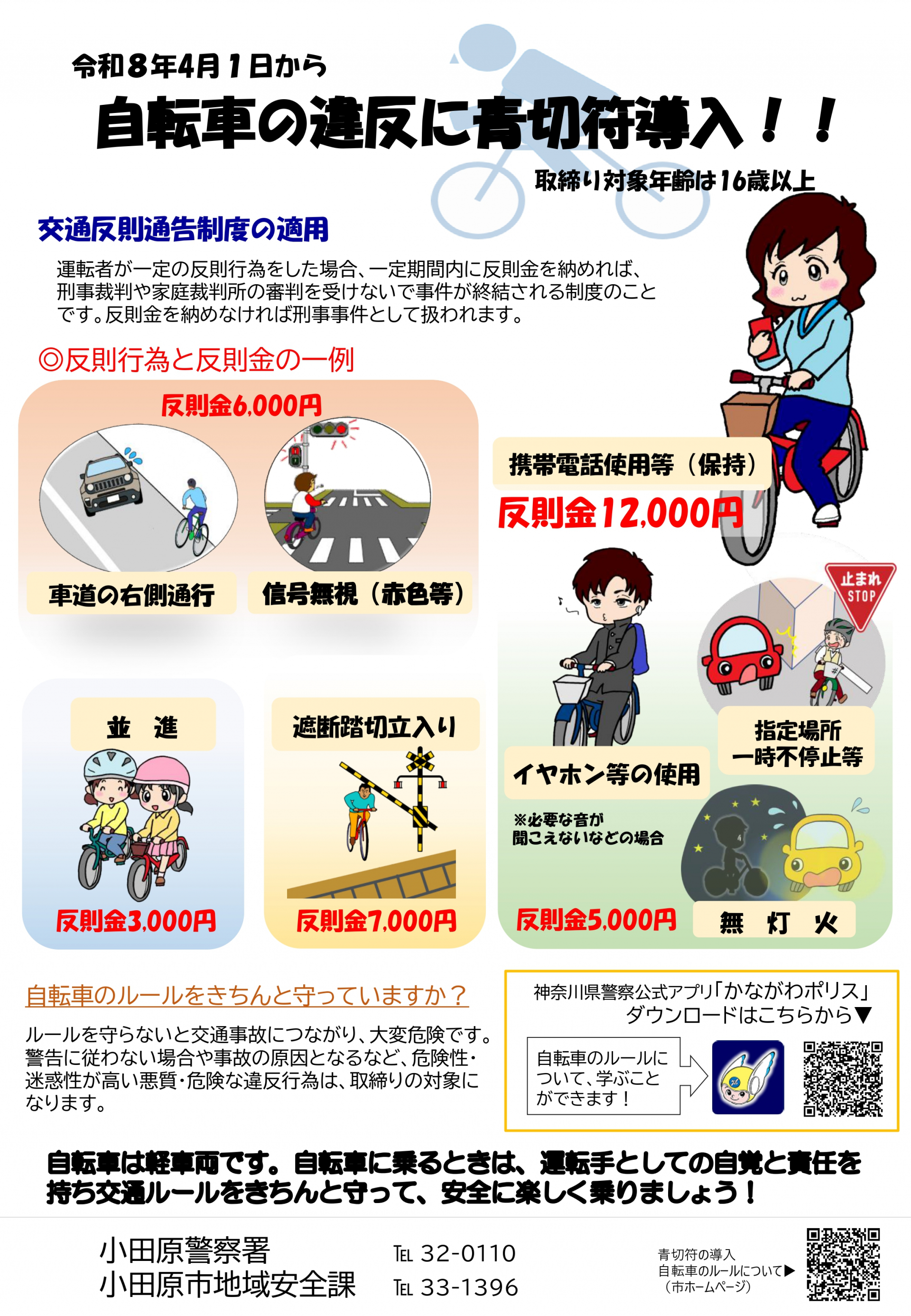 小田原警察署と市地域安全課が、青切符導入についてチラシを作成しました。地域での周知等にご活用ください。