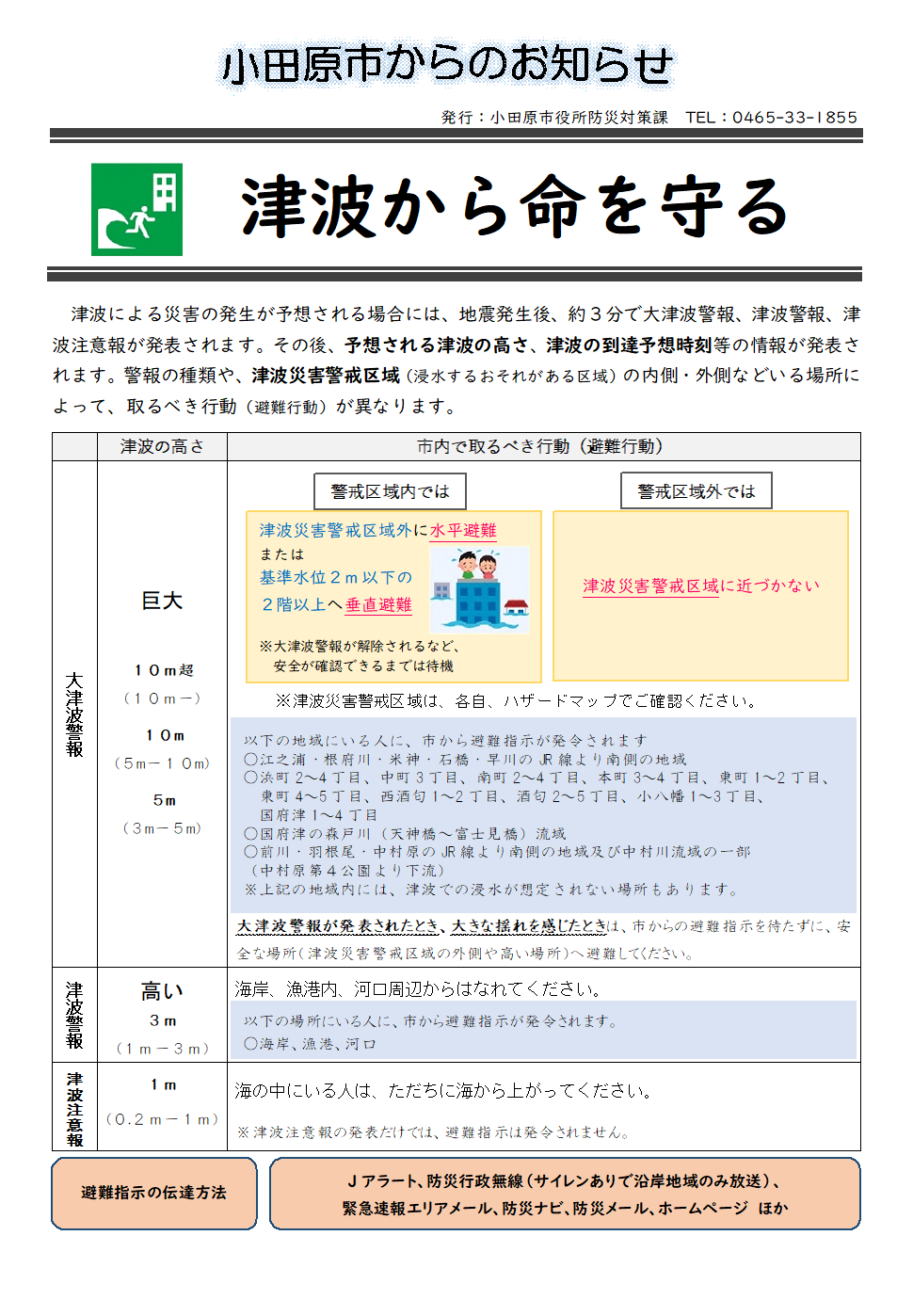 津波警報等発表時の避難指示と注意喚起について
