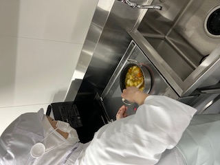 新しく導入された調理機器のスチームコンベクションオーブンを使って、鯖のピリ辛焼き、鶏肉の味噌漬け焼き、ぎょうざ(焼きと蒸し)、焼きしゅうまいの調理演習を行いました。