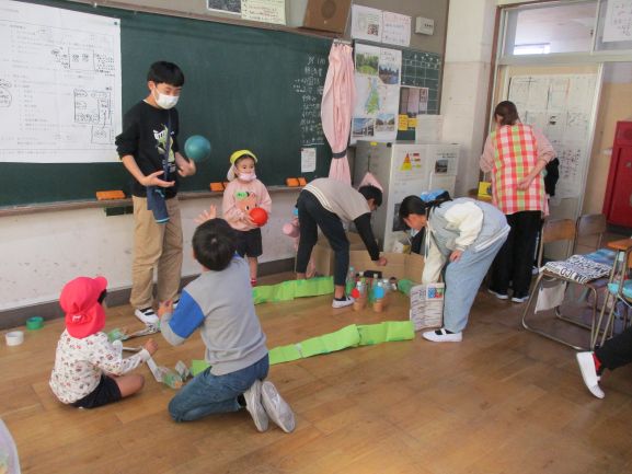 運動会の準備も友達と一緒に力を合わせ行います。ほし組さんが、ばら組さんを誘い、頑張っていました。