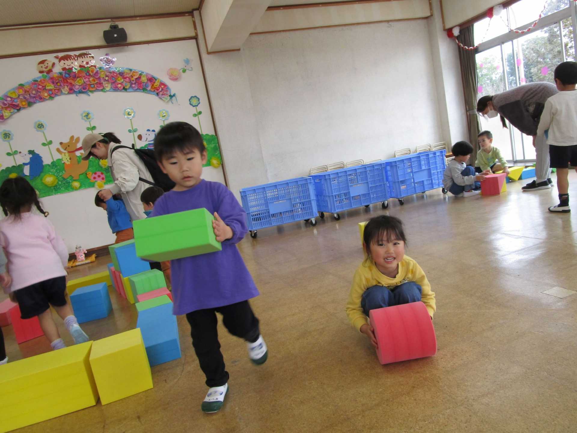 3月23日(月)のようちえんDE遊ぼう!の様子です。遊戯室で年少組の園児と一緒に遊びました。