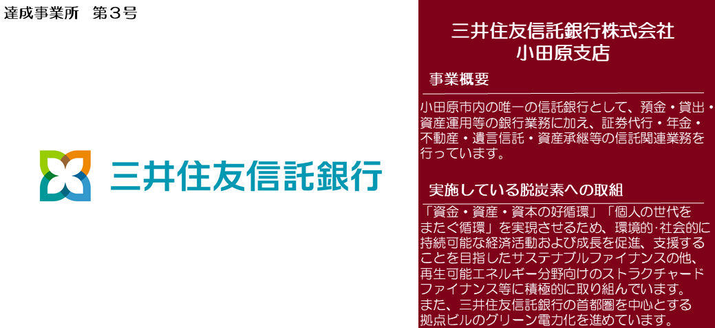達成事業所では再エネ電力の使用により、二酸化炭素排出量実質ゼロを実現することで、市の脱炭素社会実現を後押ししてくれています。