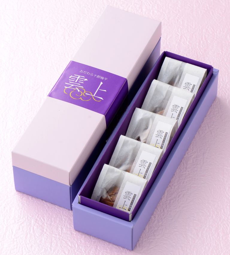 そのための事業の一つとして、プレミアム商品の開発をいたしました。十郎梅ブランド全体を牽引できるような象徴的な商品、小田原十郎梅プレミアム「雲上」は、現在の十郎梅の良さ(無添加、伝統的な漬け方)を踏襲し、健康食品として、保存食品として、梅干本来が持っているものを本物志向、健康志向の方々に伝えて行きたいと考えています。