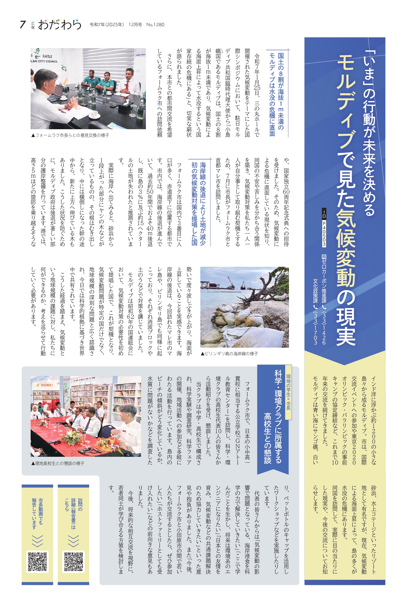 令和7年広報小田原12月号掲載記事(モルディブで見た気候変動の現実)