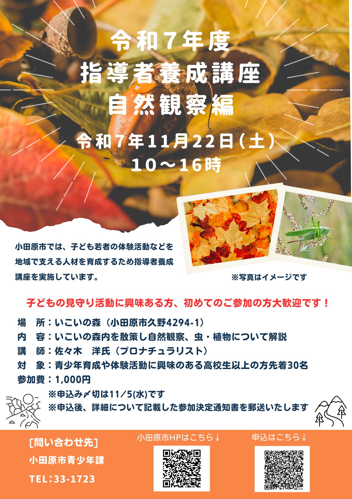 子どもの野外活動をサポートするための「令和7年度指導者養成講座」 参加者募集!