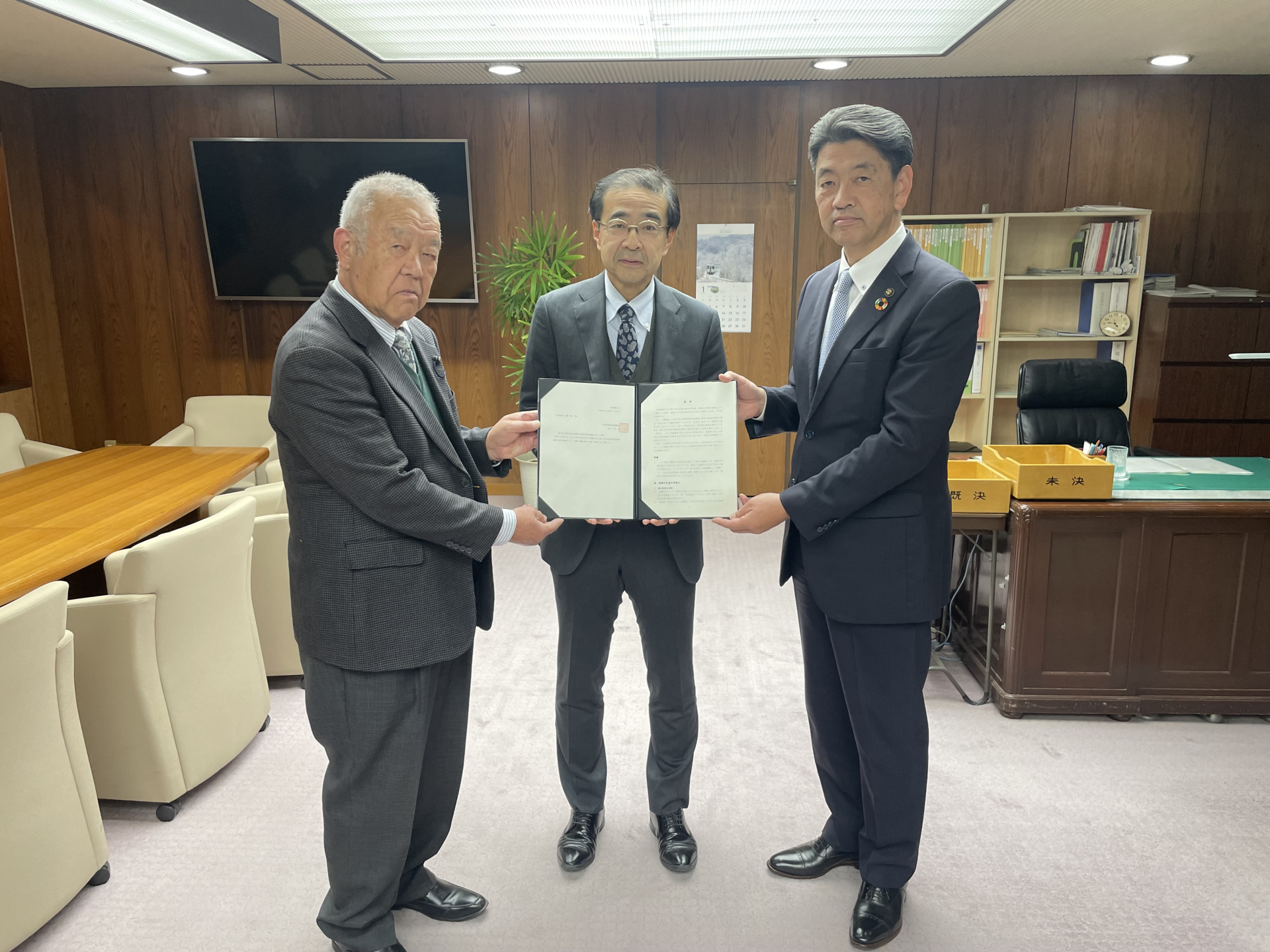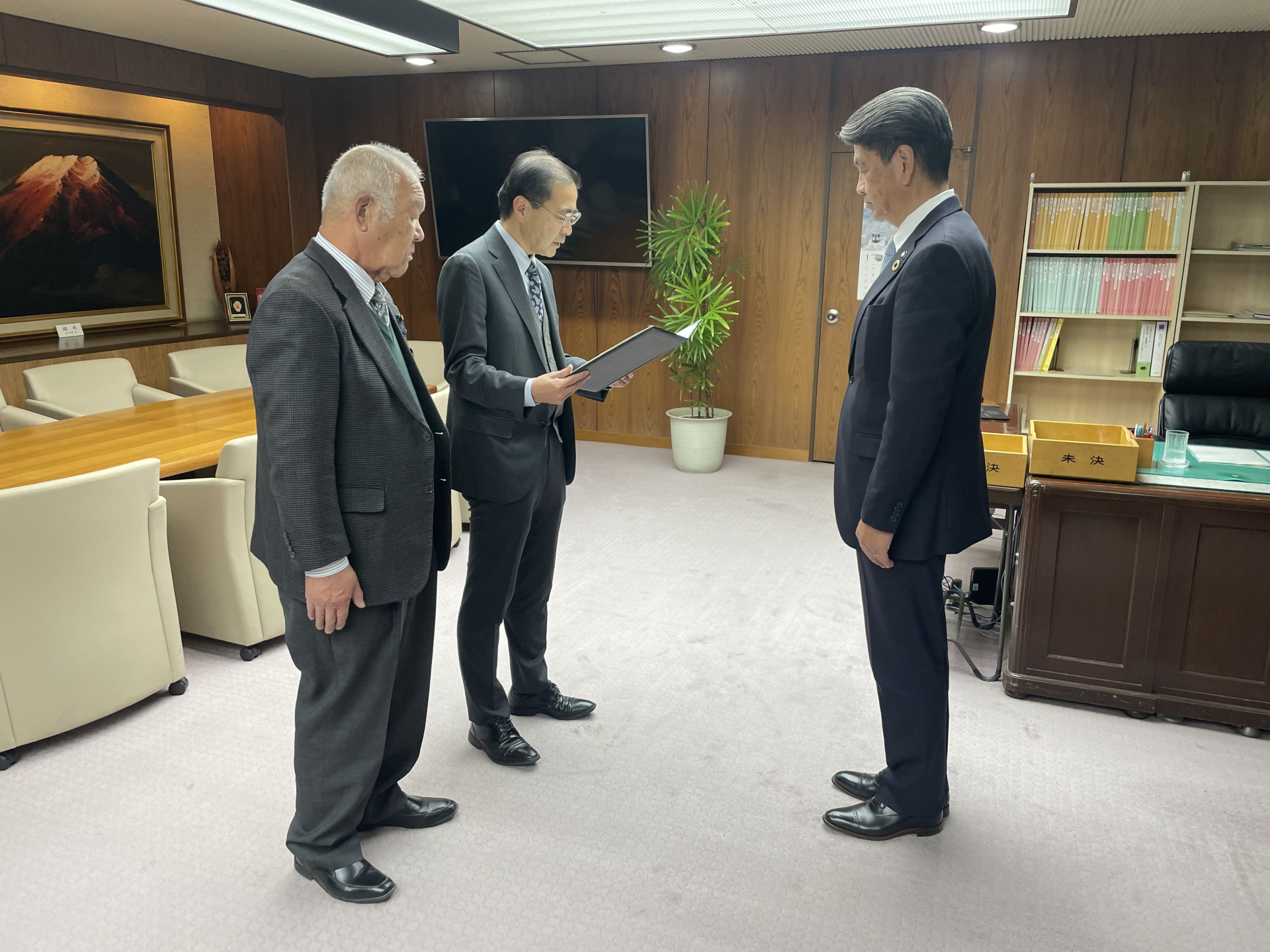 令和8年1月6日(火)に出石会長、関野副会長から、加藤市長に第7次小田原市総合計画第1期実行計画行政案について答申を行いました。