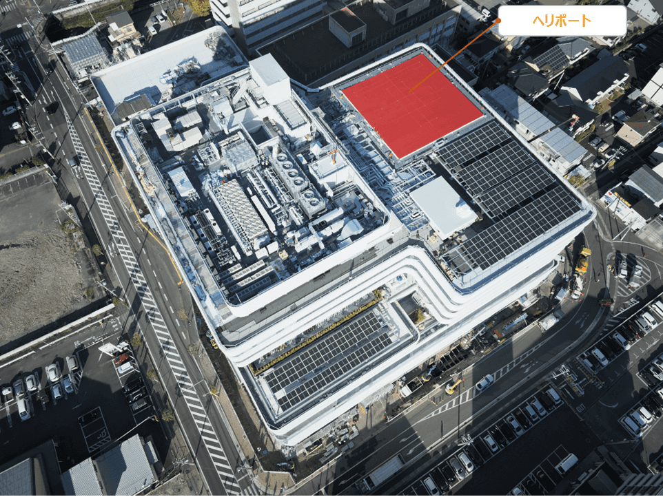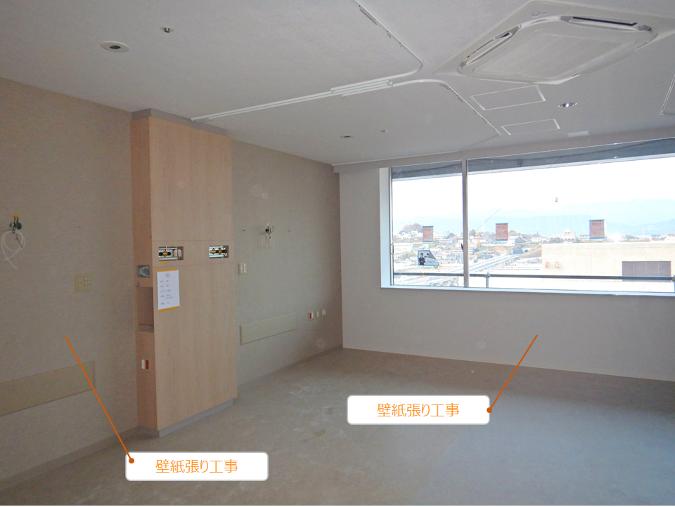 引き続き、外装工事、内装(壁紙張り)工事、設備工事、ヘリポートの塗装を進めています。工事進捗率は87.2%です。