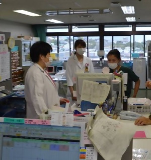 当院は電子カルテを導入しています。薬剤科ではオーダリングシステムを導入しており、医師が電子的に発行する処方データを薬剤科のシステムで受け取り、外来処方箋、入院処方箋、外来注射処方箋、入院注射処方箋等として出力し業務を行っています。