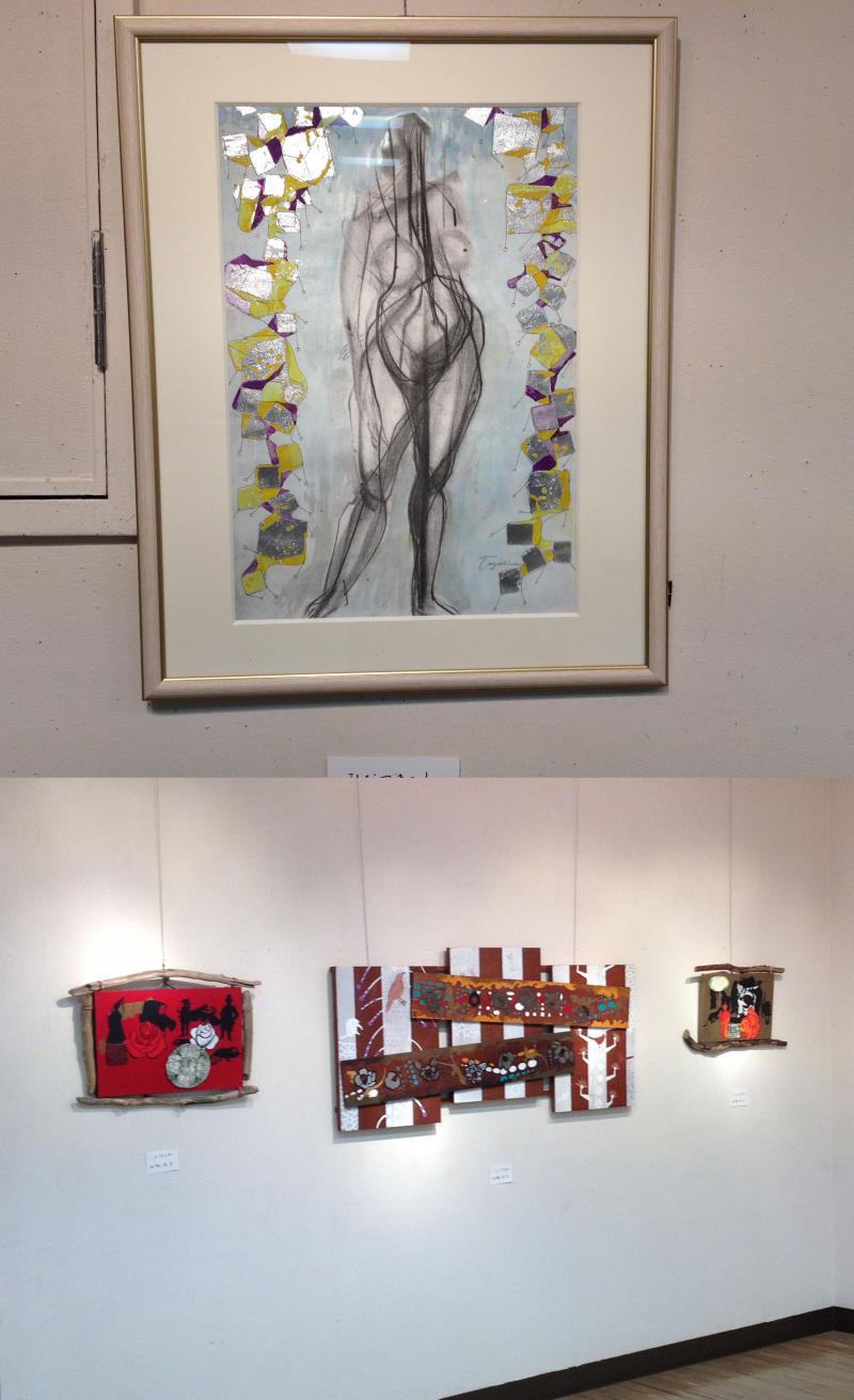 栄町の伊勢治書店3階にあるギャラリー新九郎では、9月10日から15日まで小田原の女流作家13人による「第28回小田原女流展」が開催されていた。さすが小田原の美術を代表する作家の集まりだけに、具象や抽象の26点のすばらしい作品が並ぶ。豊島シズ枝さんの「みなづきの人」は、洗練された線で描く裸婦に銀色のキューブが華やかさを添える。田隝佳子さんの「こんばんわ」は、バラ・トカゲ・トリのモチーフに、夜中を指したトケイと黒い影で描かれたヒトが夜の心象を思わせる。