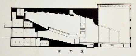 本館の建設着工は、大ホール開館の2年後の昭和39年(1964)5月であった。ということは、建設工事期間にはもう隠れてしまったはずだから、大ホールの正面が1号線側から見えていたのは、せいぜい1年半くらいしかなかったことになる。恐らく、大ホールの正面デザインは、市民に記憶される間もなかったであろう。昭和20・30年代の建築思想の特徴がよく表現された大ホールの建築デザインの魅力は、あっという間に消え去ってしまったのである。50年の時を経た現在では、建物内部の壁画も床も傷だらけとなり、洒落た備品もない殺風景この上ない雰囲気となってしまっているのが、誠に残念なことである。