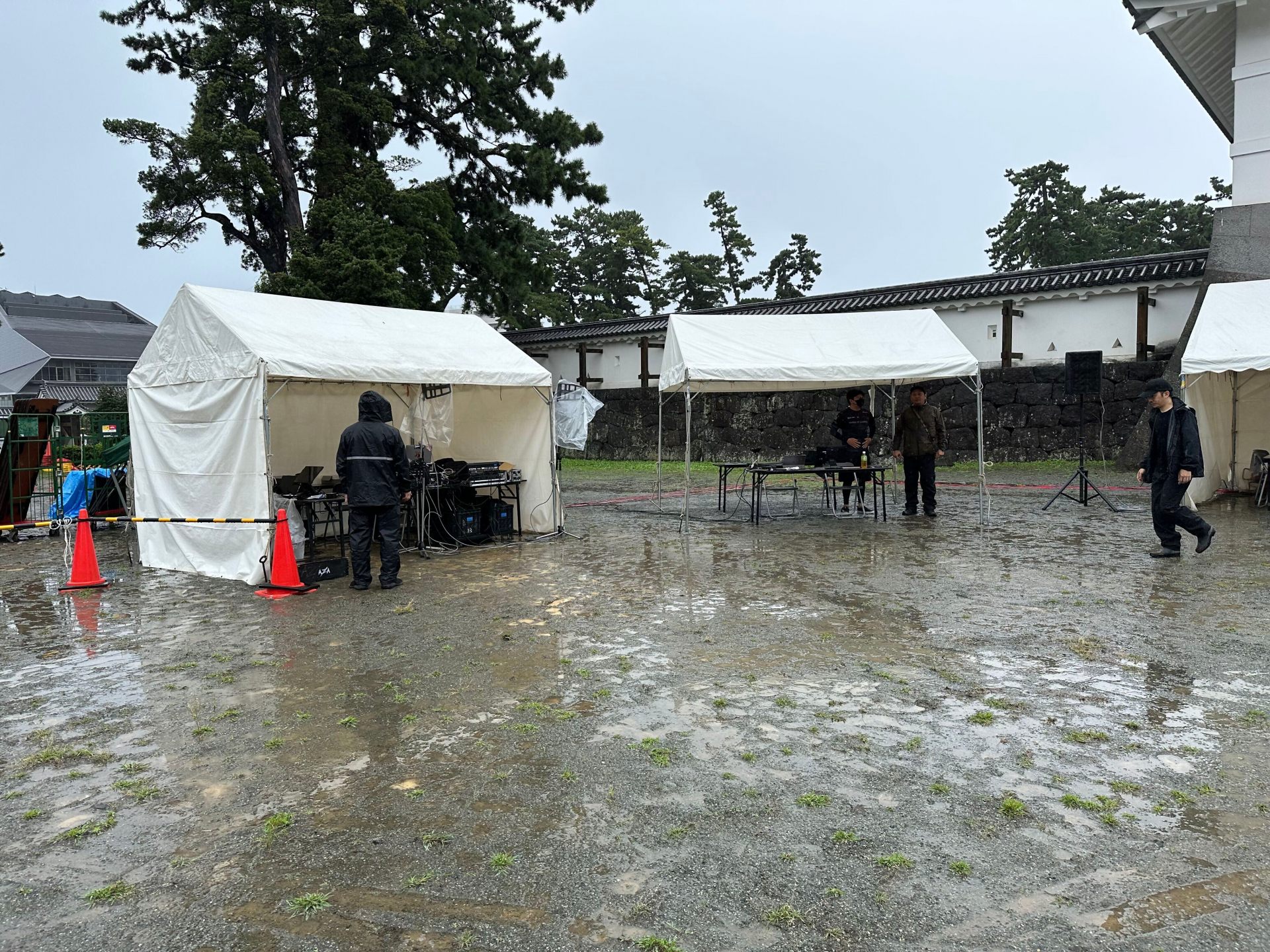 そんな天気予報を信じ、一時は土砂降りの中、朝から準備を開始しました。