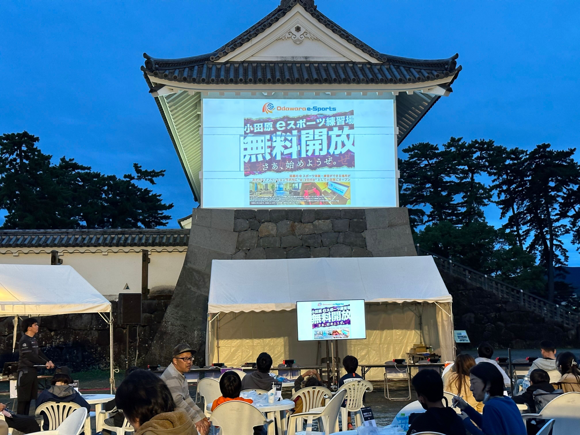 「eスポーツ×歴史×地場産業」というテーマのもと、小田原城の銅門にゲーム画面を投影してeスポーツを楽しむ体験会を開催した本イベント。