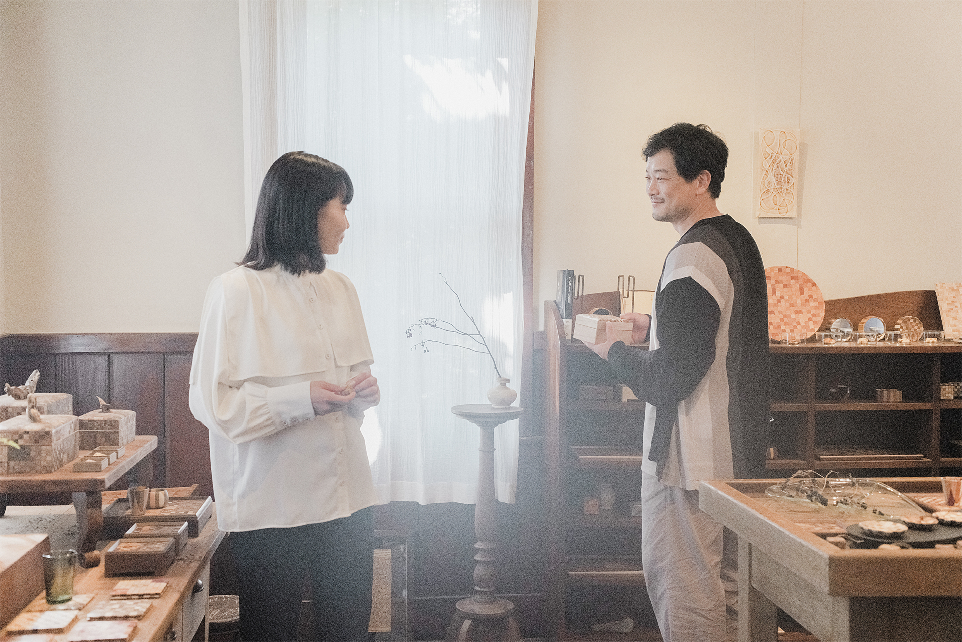 旅の最後に伊吹は短歌を詠むように、ひとつのささやかな寄木細工のブローチを選び取る。