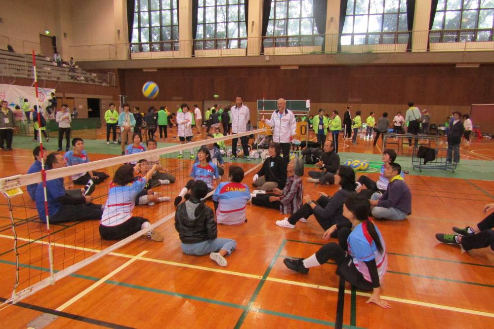 ※シッティングバレーは、床にお尻をつき座った姿勢でプレーする6人制のバレーボールです。
