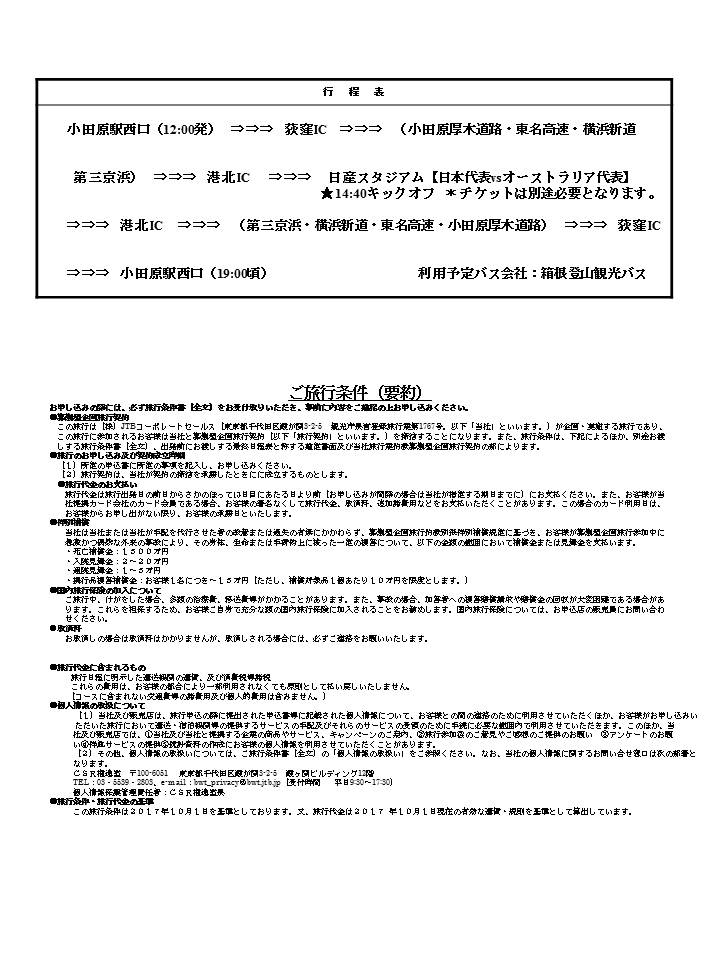 11月4日(土)に横浜の日産スタジアムで行われた「リポビタンDチャレンジカップ2017 ラグビー日本代表VSオーストラリア代表」を観戦するため、小田原駅から出発するバスツアーを開催しました。