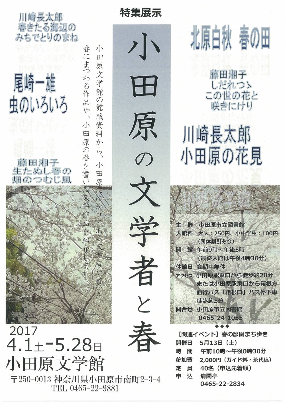 特集展示「小田原の文学者と春」では、小田原にゆかりのある文学者たちが、桜の名所でもある小田原文学館周辺にとって、もっとも華やかな季節である春を描いた作品をご紹介しました。